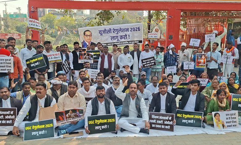 यूजीसी रेगुलेशन 2026 को लागू करने की मांग को लेकर धरना प्रदर्शन