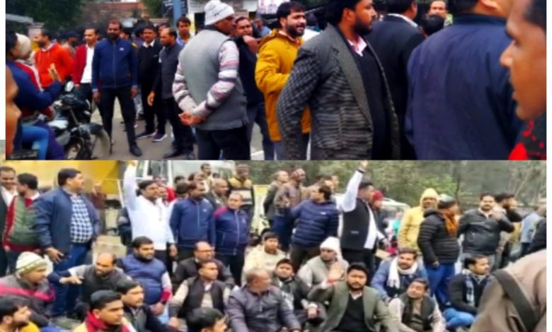 चोरी की घटनाओं से गुस्साए अधिवक्ताओं नेनारेबाजी कर प्रदर्शन किया।