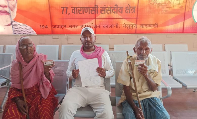 वाराणसी। राजातालाब तहसील के ग्राम सभा अदमापुर महनाग के मूल निवासी समाज सेवी सुबेदार यादव के माता-पिता जो कि 80 साल के बुजुर्ग दम्पति हैं माता सोमारी देवी, पिता संग्राम यादव जिसमें बुजुर्ग सोमारी देवी के आंख में समस्या होने से बुजुर्ग को परेशानी का सामना करना पड़ रहा हैं जिसके चलते समाज सेवी सुबेदार यादव के माता पिता अपना आयुष्मान कार्ड संसोधन को लेकर प्रधानमंत्री कार्यालय पहुंचे। सूबेदार यादव अवगत कराते हुए कहते हैं कि माता पिता का आयुष्मान कार्ड बना लेकिन काम नहीं आ रहा है तो इसका क्या बनने से फायदा बताते हुए कह रहे हैं कि मेरे माता जी के बाईं आंख से दिखाई देना बंद हो गया जब हम डाक्टर को दिखाएं तो डाक्टर ने कहा कि आंख में रेटीना में दिक्कत है खून जम गया है इन्जेकशन लगाना पड़ेगा और लेजर करना पड़ेगा जिसके उपरांत इंजेक्शन का दाम 20 हजार