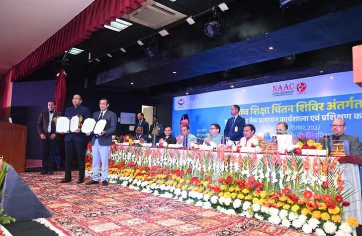 देहरादून। मुख्यमंत्री पुष्कर सिंह धामी ने आज देहरादून में आयोजित उच्च शिक्षा चिंतन शिविर के अंतर्गत राज्य स्तरीय NAAC प्रत्यायन कार्यशाला एवं प्रशिक्षण कार्यक्रम में प्रतिभाग किया। इस अवसर पर मुख्यमंत्री धामी ने उच्च शिक्षा संस्थानों पर आधारित “उत्तराखण्ड राज्य के नैक प्रत्यायन की क्वालिटी फैक्ट रिपोर्ट अनुशंसा रिपोर्ट” एवं “इनोवेशन इन हायर एजुकेशन” पुस्तक का विमोचन किया। मुख्यमंत्री धामी की उपस्थिति में उच्च शिक्षा विभाग द्वारा उत्तराखण्ड राज्य में उच्च शिक्षा संस्थानों के आधुनिकरण, उद्यमिता और कौशल विकास के क्षेत्र में देश के प्रतिष्ठित संस्थान “भारतीय उद्यमिता विकास संस्थान अहमदाबाद” के साथ उद्यमिता संवर्धन हेतु MoU हस्ताक्षरित किया गया साथ ही छात्रों को वर्चुअल लैब की सुविधा प्रदान करने हेतु अमृता विश्वविद्यापीठम् केरल तथा कम्प्यूटर दक्षता और आई0टी0 विशेषज्ञता के लिए एडूनेट आईबीएम के साथ भी MoU किया गया। मुख्यमंत्री धामी ने कहा कि इस चिंतन शिविर के मंथन से अवश्य ही ज्ञानरूपी अमृत निकलेगा, जो हमारे प्रदेश में शिक्षा व्यवस्था के क्षेत्र में गुणात्मक सुधार करने में सहायक सिद्ध होगा। मुख्यमंत्री धामी ने कहा कि आज प्रधानमंत्री नरेंद्र मोदी के कुशल नेतृत्व में नये भारत की नींव रखी जा रही है। नई शिक्षा नीति के माध्यम से देश की आने वाली पीढ़ी हमारे देश के वास्तविक इतिहास व महान संस्कृति से परिचित हो सकेगी। उन्होंने कहा कि जहां एक पुरानी शिक्षा पद्धति युवाओं को सिर्फ नौकरी दिलाने का उद्देश्य रखती थी, वहीं नई शिक्षा नीति के माध्यम से युवा स्वयं नौकरियां देने वाले बन सकेंगे। इसके माध्यम से युवा इन्टरप्रेन्योर बन सकेगा और स्टार्टअप विकसित कर सकेगा मुख्यमंत्री धामी ने कहा कि उत्तराखण्ड राज्य के NAAC प्रत्यायन की क्वालिटी फैक्ट एवं अनुशंसा रिपोर्ट उच्च शिक्षा के क्षेत्र में सरकार के कार्य की रूपरेखा निश्चित करने में सहायक सिद्ध होगी। दूरस्थ क्षेत्रों में शिक्षा पहुँचाने के प्रयास में नैक संस्था का पूरा सहयोग मिल रहा है। इस अवसर पर उच्च शिक्षा मंत्री डॉ. धन सिंह रावत, नैक बैंगलुरू के निदेशक प्रो.एस.सी. शर्मा, चांसलर DIT यूनिवर्सिटी एन. रविशंकर, सचिव उच्च शिक्षा शैलेश बगौली, अपर सचिव उच्च शिक्षा प्रशांत आर्य, निदेशक उच्च शिक्षा डॉ. जगदीश प्रसाद सहित अन्य गणमान्य उपस्थित रहे।