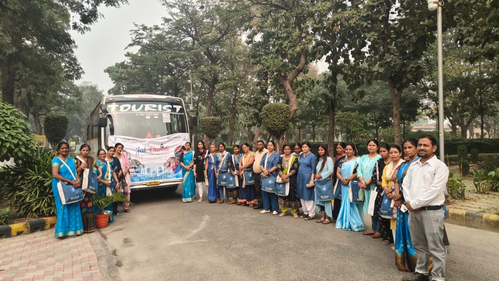 दिल्ली ने 9 नवंबर 2023 को जल दिवाली मनाई जिसमें स्वयं सहायता समूहों (एसएचजी) को चार वाटर ट्रीटमेंट प्लांट (सोनिया विहार, वजीराबाद, ओखला और भागीरथी) का दौरा करने का अवसर मिला। इस यात्रा का उद्देश्य उन्हें घरों में स्वच्छ और सुरक्षित पेयजल की आपूर्ति में शामिल विभिन्न प्रक्रियाओं की समझ प्रदान करना था। दिल्ली जल बोर्ड के अधिकारियों ने महिला एसएचजी सदस्यों को वाटर ट्रीटमेंट प्लांट में कार्यान्वित की जा रही जल गुणवत्ता परीक्षण प्रक्रियाओं के बारे में शिक्षित किया, जो सुनिश्चित करती हैं कि नागरिकों को उच्च गुणवत्ता वाला पानी मिले। एसएचजी सदस्यों ने डीजेबी अधिकारियों के साथ बातचीत की और इस बारे में अधिक जानकारी मांगी कि पानी उनके घर तक कैसे पहुंचता है। वे यह देखकर आश्चर्यचकित हुई कि जल शुद्धिकरण और वितरण का बुनियादी ढांचा कितना विशाल होता है