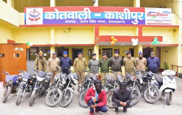 काशीपुर /उत्तराखंड (रिजवान अहसन ),,,पुलिस ने ऐसे दो चोरों को गिरफ्तार किया है। उनके पास से चोरी की 9 बाइकें व 1 स्कूटी बरामद हुई है।