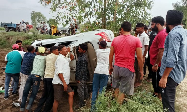 अफजलगढ़़। गांव कादराबाद में स्थित नवाबपुरा तुरतपुर मार्ग पर कार अज्ञात वाहन को बचाने के दौरान अनियंत्रित होकर सड़क के किनारे गड्ढों में गिरने से पलट गए