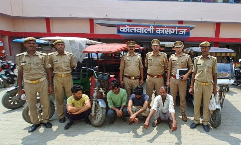 कासगंज पुलिस ने चोरो के कब्जे से भारी मात्रा में चोरी की हुई ई रिक्शाऐं भी की बरामद