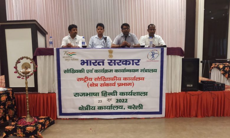 बरेली : राजभाषा विभाग, गृह मंत्रालय, भारत सरकार के दिशा-निर्देशों के तत्वाधान में भारत सरकार के सांख्यिकी एवं कार्यक्रम कार्यान्वयन मंत्रालय के अधीन राष्ट्रीय सांख्यिकीय कार्यालय (क्षेत्र संकार्य प्रभाग) के क्षेत्रीय कार्यालय, बरेली द्वारा “ राजभाषा हिंदी “ पर एक दिवसीय कार्यशाला का आयोजन सम्पन्न हुआ | इस अवसर पर क्षेत्रीय कार्यालय बरेली के निदेशक श्री सुस्मित ने दीप प्रज्ज्वलित कर कार्यशाला का शुभारम्भ किया | अपने उद्बोधन में उन्होंने राजभाषा के रूप में हिंदी की वर्तमान स्थिति एवं भावी दिशा पर विस्तार से चर्चा करते हुए कार्यालयी कार्यों में हिंदी के अधिकाधिक उपयोग की बात पर जोर दिया | कार्यक्रम में वक्ता के रूप में आमंत्रित श्री प्रभाकर मिश्रा, राजभाषा अधिकारी, मंडल कार्यालय, पूर्वोत्तर रेलवे एवं श्रीमती मीता गुप्ता, प्रवक्ता, हिंदी, केन्द्रीय विद्यालय, पूर्वोत्तर रेलवे इज्जत नगर बरेली ने राजभाषा के रूप में हिंदी की प्रगति, दशा एवं बहुआयामी प्रयोग पर परिचर्चा की जिसमें राजभाषा नियम एवं अधिनियम के विभिन्न सोपानों और कम्प्यूटरीकरण के इस दौर में हिन्दी के नये आयामों सहित भिन्न पक्षों पर प्रकाश डाला | श्रीमती गुप्ता ने प्रशासनिक हिंदी का विकास एवं हिंदी टिप्पण एवं प्रारूप लेखन पर व्याख्यान देते हुए भावी समय में हिंदी की महती भूमिका पर चर्चा की | कार्यक्रम के समापन पर धन्यवाद ज्ञापित करते हुए वरिष्ठ सांख्यिकीय अधिकारी एवं कार्यालयाध्यक्ष श्री राम दयाल ने आमंत्रित वक्ता और समस्त अधिकारियों / कर्मचारियों का धन्यवाद ज्ञापित किया एवं सार्थक सहभागिता के लिए आभार प्रकट किया |