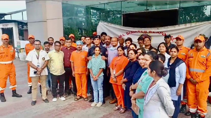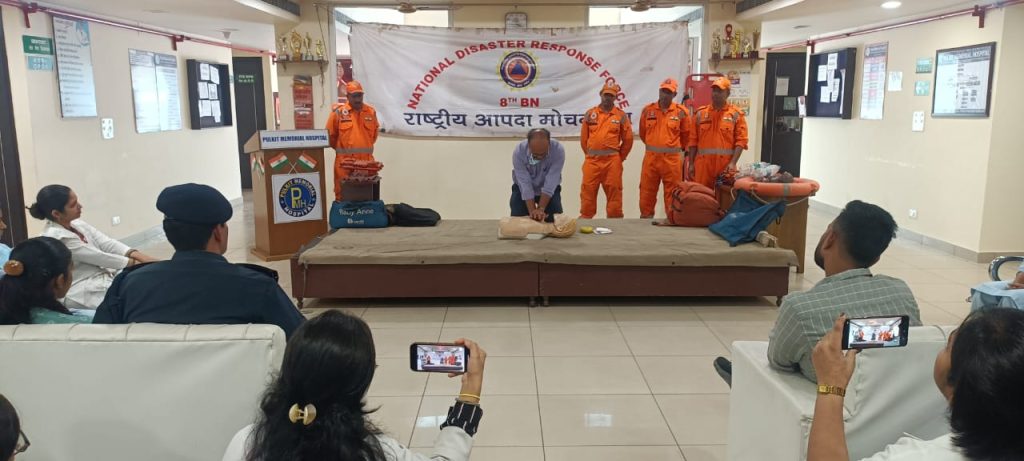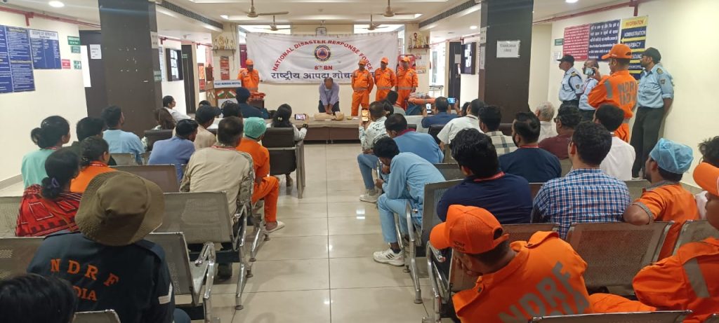 बिजनोर– राष्ट्रीय आपदा प्रबंधन प्राधिकरण, गृह मंत्रालय भारत सरकार, नई दिल्ली के निर्देशन पर Bijnor, फैमेक्स प्रोग्राम के अंतर्गत 8 वीं बटालियन एनडीआरएफ, गाज़ियाबाद के 17 सदस्यों की team dwara टीम कमांडर inspector सत्यवीर singh के नेतृत्व में जिलाधिकारी महोदय बिजनौर के निर्देशन पर आज दिनांक 08.10.2023 को पुलकित हॉस्पिटल , बिजनौर me jan jagran karyakram आयोजित kiya gaya . Jisme आपदा प्रबंधन प्रशिक्षण/जागरूकता कार्यक्रम का आयोजन ज़िला आपदा प्रबंध प्राधिकरण के सहयोग से अस्पताल परिसर मे 1500.00 बजे se 1700 bje जनपद के chetra me विभिन्न sambhavit आपदाओं से संबंधित jaise आकाशीय विद्युत, सर्पदंश, बाढ़ और भूकंप आदि विभिन्न आपदाओं* के प्रति अस्पताल के कर्मचारियों को तथा जनताआपदा संबंधी मॉक एक्सरसाइज व आपदा प्रबंधन प्रशिक्षण जागरूकता कार्यक्रम का आयोजन कर विभिन्न आपदाओं के प्रति जागरूक किया गया। प्रक्षिक्षण कार्यक्रम में किसी भी दुर्घटना से प्रभावित व्यक्ति को सीपीआर देने प्रयोगात्मक विधि/ दो व्यक्तियों तथा uplabdh sansadhano ke improvised स्ट्रेचर बनाने और यदि किसी व्यक्ति के मुँह या गले में कुछ फँस जाये तो उसके निकालने के तरीक़े आदि को बताते हुए जागरूकता करने का कार्य किया गया।