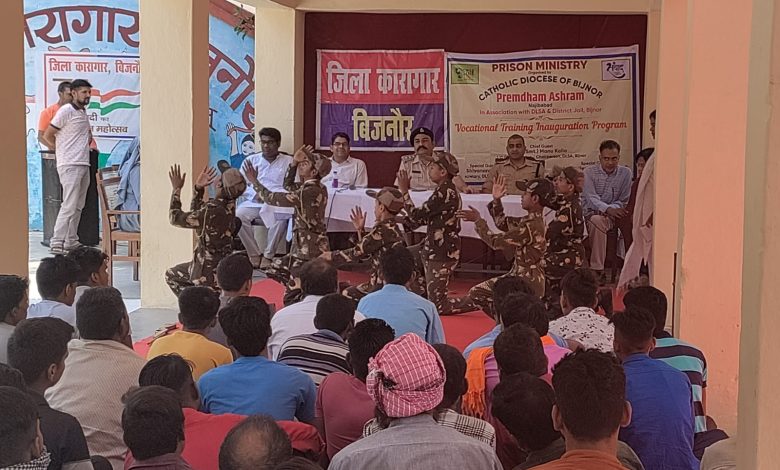 जिला कारागार बिजनौर में दिन प्रतिदिन निरुद्ध बंदियों को मानसिक विचारों को बदलने और सामाजिक कार्यों में बढ़ावा देने और अपराध मुक्त जीवन जीने के लिए जिला कारागार अधीक्षक शैलेंद्र प्रताप सिंह बंदियों में बदलाव लाने के लिए सांस्कृतिक कार्यक्रम आयोजित कराए जा रहे हैं। जेल में निरुद्ध बन्दियों के जीवन को अंधकार से प्रकाश की ओर ले जाने में जिलाकरागार अधीक्षक बिजनौर शैलेंद्र प्रताप सिंह का अत्यंत महत्वपूर्ण योगदान है। आज दिनांक 6 जून 2022 को प्रेमधाम आश्रम के सौजन्य से फादर शिबू थॉमस के नेतृत्व में दिव्यांग बच्चों द्वारा जिला करागार बिजनौर निरुद्ध बंदियों के नैतिक एवं मानसिक विकास हेतु सांस्कृतिक कार्यक्रमों का आयोजन किया गया। इस अवसर पर प्रेम धाम आश्रम के स्पेशल चाइल्ड ने गीत नृत्य नाटिका के माध्यम से कार्यक्रम प्रस्तुत कर सबका मन मोह लिया इस अवसर पर टीम के अन्य सदस्यो फादर टी. ए. एंटोनी फादर शाजु फ़ादर लिंटो सिस्टर रेखा मारिया सिस्टर एंसीना सिस्टर शीज़ा, अम्बर राजा, नवीन घिल्डियाल, आदि ने बन्दियों के जीवन मे परिवर्तन लाने वालेअनेक उदाहरण प्रस्तुत किए।कार्यक्रम के मुख्य आयोजक एवं प्रबंधक फ़ादर शिबू थॉमस ने कहा कि मनुष्य को अपने जीवन में हमेशा धैर्य का परिचय देना परिस्थितियां चाहे कैसी भी हो कार्यक्रम के अंत में कारागार के प्रभारी अधीक्षक श्री शैलेंद्र प्रताप सिंह ने अपने संबोधन में बंधुओं से अपनी सोच में परिवर्तन लाकर सुधार की दिशा में अग्रसर होने तथा आश्रम के दिव्यांग बच्चों के जीवन से प्रेरणा लेकर विपरीत परिस्थितियों में भी स्वयं को प्रसन्न रखने का आह्वान किया साथ ही इस आयोजन हेतु संस्था के आयोजकों को धन्यवाद दिया।