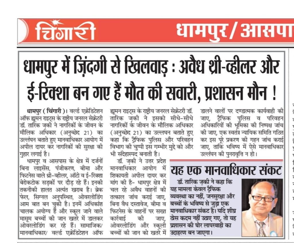बिजनौर -22 मई,2025:- जिलाधिकारी जसजीत कौर की अध्यक्षता में आज दोपहर 12:00 बजे कलेक्ट्रेट स्थित महात्मा विदुर सभागार में आयोजित सड़क सुरक्षा समिति की बैठक संपन्न हुई। इस अवसर पर अपर जिला अधिकारी प्रशासन विनय कुमार सिंह सहित लोक निर्माण विभाग, एआरटीओ, ट्रैफिक पुलिस, रोडवेज सहित अन्य संबंधित विभागों के जिला स्तरीय अधिकारी मौजूद थे।
