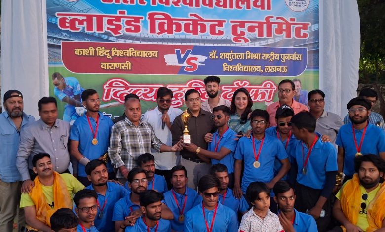 वाराणसी :- काशी हिंदू विश्वविद्यालय के एमपी थियेटर में ऑल इंडिया दिव्यांग क्रिकेट एसोसिएशन द्वारा आयोजित दो दिवसीय दिव्य दृष्टि ट्राफी अंतर विश्वविद्यालयी ब्लाइंड क्रिकेट टूर्नामेंट में काशी हिंदू विश्वविद्यालय वाराणसी एवं लखनऊ के डॉ शकुंतला मिश्रा राष्ट्रीय पुनर्वास विश्वविद्यालय के बीच दो मैच खेला गया | पहला मैच सुबह खेला गया जिसमें डॉ शकुंतला मिश्रा राष्ट्रीय पुनर्वास विश्वविद्यालय लखनऊ ने टॉस जीता और पहले बल्लेबाजी करने का निर्णय लिया और निर्धारित दस ओवरों में 208 रन केवल एक विकेट खोकर बनाए टीम की ओर से विक्रम सेन ने बीस चौके और दो छक्के की मदद से कुल 108 रनों का तथा अजीत ने नौ चौकों की मदद से 45 रनों का योगदान दिया | काशी हिंदू विश्वविद्यालय को एक विकेट रन आऊट के रुप में मिला |