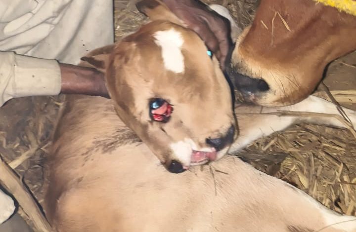 थाना मंडावली क्षेत्र ग्राम रामनगर में गाय ने दिया दो मुह व तीन आंखों वाली बछिया को जन्म देखने वालों का लगता तांता