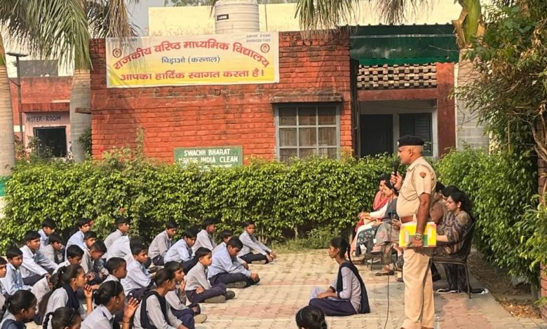 पुलिस अधीक्षक करनाल श्री मोहित हाण्डा के कुशल निर्देशन में आज सुबह थाना यातायात टीम द्वारा राजकीय वरिष्ठ माध्यमिक विघालय, चिड़ाव के विघार्थीयों को यातायात नियमों बारे विस्तार से जानकारी दी गई व दुर्घटना में घायल व्यक्ति की सहायता करने के लिए प्रेरित करते हुए नेक व्यक्तियों की सुची में शामिल होने के लिए भी बताया गया।