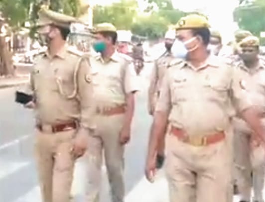 वजीरगंज-आज वजीरगंज कोतवाली के उपनिरीक्षक श्री दिलीप सिंह जी ने अपनी पुलिस टीम के साथ पूरे नगर में पैदल मार्च करते हुए लोगों को लॉक डाउन का पालन करने की हिदायत देते हुए यह भी बतलाया कि अगर कोई भी व्यक्ति बेवजह घर से बाहर घूमते नजर आएगा या बगैर मास्क के घर से निकलेगा तो पुलिस प्रशासन उसके विरुद्ध कड़ी से कड़ी कार्रवाई करेगी साथ ही सभी दुकानदारों को भी अवगत कराया कि वह समय का ध्यान रखते हुए अपनी दुकानों को सुबह 6:00 से 9:00 बजे तक ही खोला करें अन्यथा पकड़े जाने पर आपके विरुद्ध कठोर कार्रवाई कर चालान काट कर जेल भेजा जाएगा किसी भी समस्या से निपटने के लिए वजीरगंज पुलिस आम जनता के लिए सदैव तैयार रहेगी