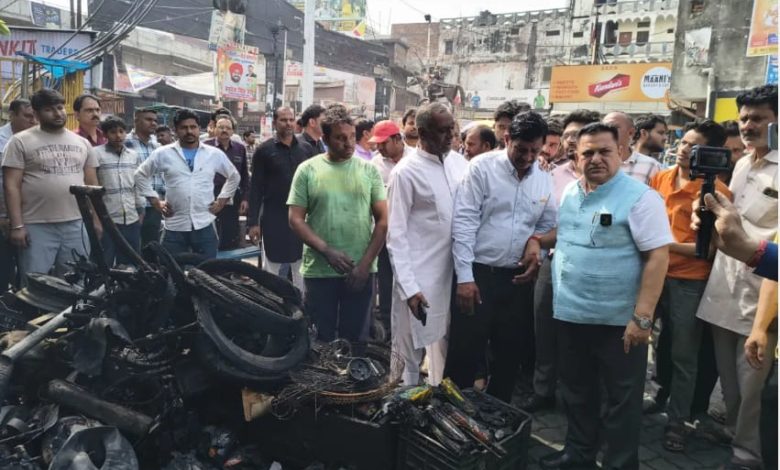 नगर के बीचो बीच दो दुकानों मे लगी आग, सब कुछ स्वाहा,,मदद को आगे आए मेयर बाली