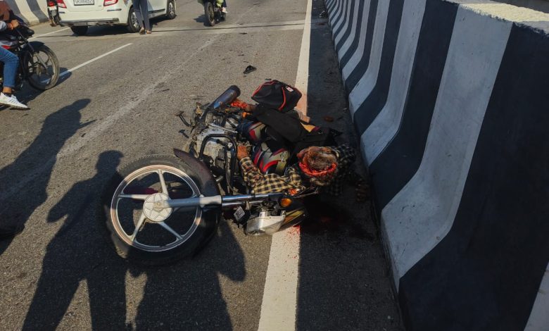 बाइक सवार युवक की मोके पर ही हुई दर्दनाक मौत।