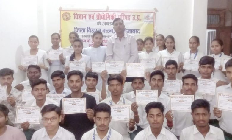विज्ञान एवं प्रौद्योगिकी परिषद उत्तर प्रदेश के अंतर्गत जिला विज्ञान क्लब फिरोजाबाद के तत्वाधान में जिला समन्वयक अश्वनी कुमार जैन के संयोजन में जिला विज्ञान क्लब के कार्यालय पर चौदह दिवसीय निःशुल्क विज्ञान कैम्प का समापन पर प्रतिभागियों को प्रमाण पत्र प्रदान करके सम्मानित किया गया।