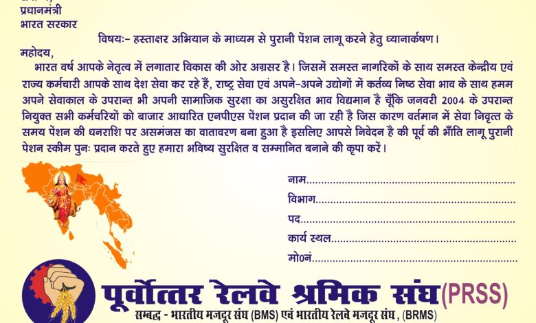 न्यू पेंशन स्कीम (NPS) के विरोध में पूर्वोत्तर रेलवे श्रमिक संघ शुरू करेगा “हस्ताक्षर अभियान”: विकास केशरी