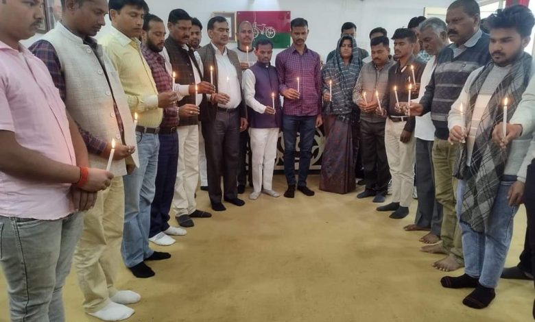 पूर्व ब्लाक प्रमुख नवाब सिंह यादव की अगुवाई में दर्जनों कार्यकर्ताओं ने कैंडल जलाकर 2 मिनट का रखा मौन