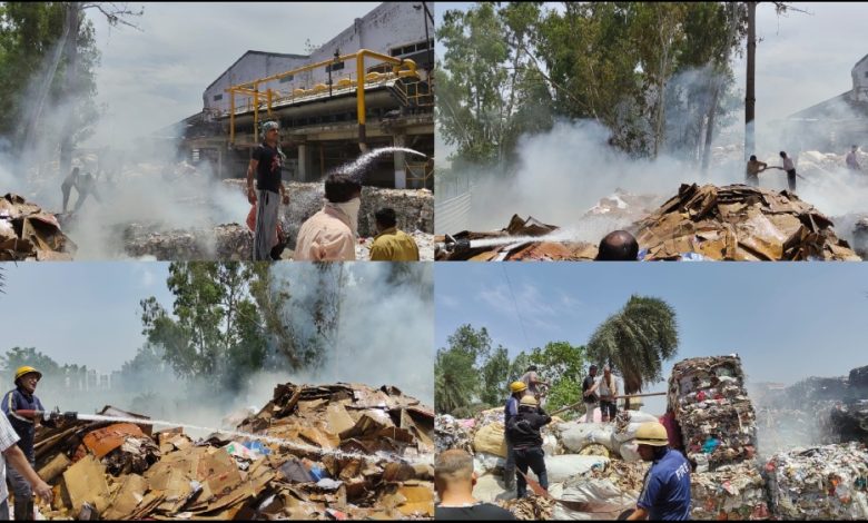 पेपर मिल के यार्ड में लगी भीषण आग, अग्निशमन के छूटे पसीने, 6 घंटे में पाया काबू