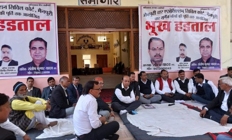 • वार एसोसिएशन के जिला अध्यक्ष साथियों संग बैठे भूख हड़ताल पर