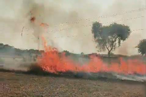 बिजली की शार्ट सर्किट से गेहूं का फसल जलकर हुआ राख