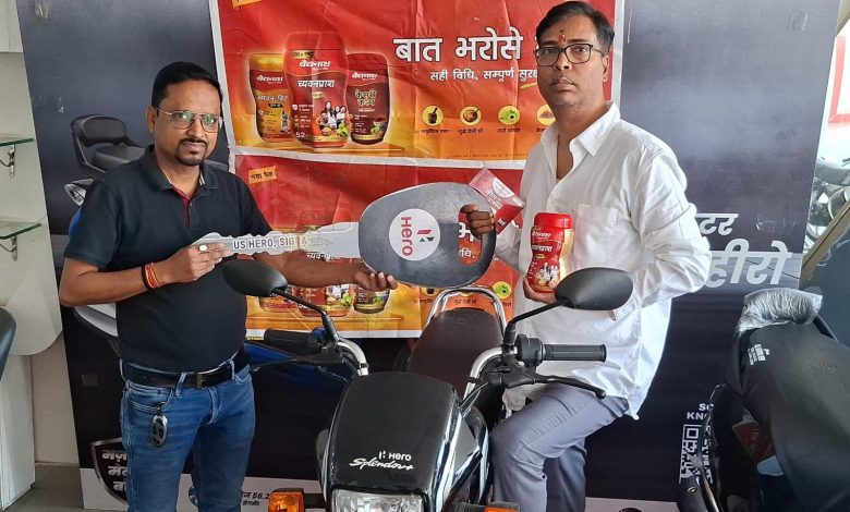 बैद्यनाथ च्यवनप्राश लकी ड्रा में वाराणसी सप्तसागर दवा मंडी के व्यापारी विमलेश जायसवाल आनंद मार्केटिंग ने जीती बाइक