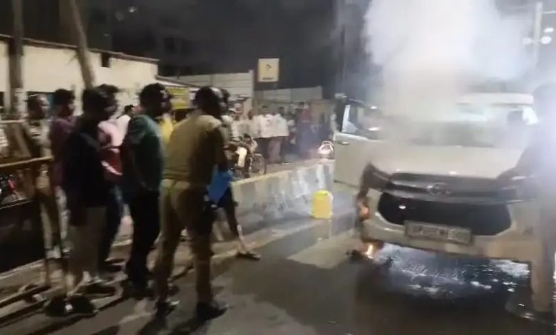 मालवीय चौराहे के पास चलती इनोवा में लगी आग, राहगीरों में मची अफरातफरी, स्थानीय लोगों की सूझबूझ से टला बड़ा हादसा