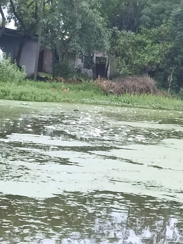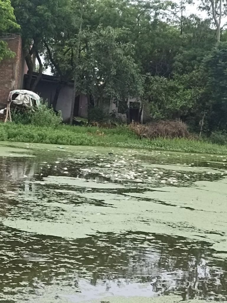 केमिकल युक्त पानी ग्राम मोहड़ा के तालाब में आने से मछलियों की तड़पकर हुई मौत।