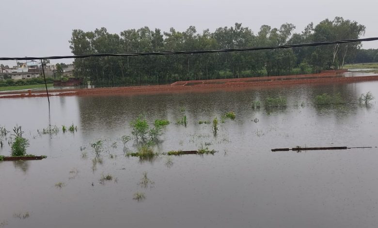 मूसलाधार बारिश से कालोनिओ में खाली पड़े प्लाट हुए जलमग्न मकानो की नींव को खतरा