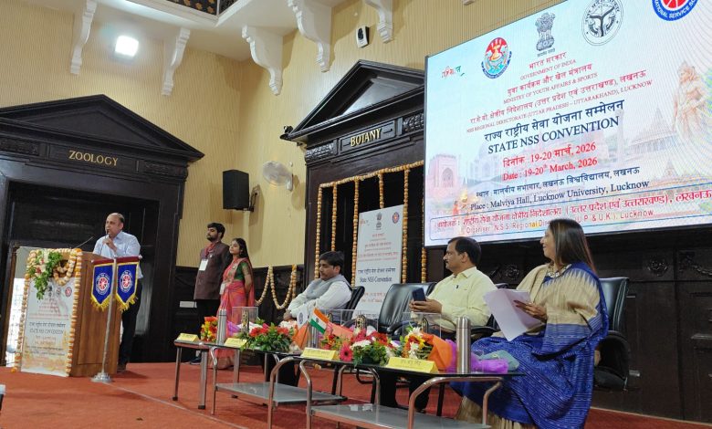 वाराणसी/लखनऊ :- भारत सरकार के युवा कार्यक्रम एवं खेल मंत्रालय के राष्ट्रीय सेवा योजना (एनएसएस) क्षेत्रीय निदेशालय (उत्तर प्रदेश एवं उत्तराखंड), लखनऊ के तत्वावधान में 19 व 20 मार्च 2026 को लखनऊ विश्वविद्यालय के मालवीय सभागार में दो दिवसीय राज्य स्तरीय एनएसएस सम्मेलन का आयोजन शुरू हुआ | कार्यक्रम का शुभारंभ दीप प्रज्वलन और एनएसएस लक्ष्य गीत के साथ किया गया | उद्घाटन सत्र में राष्ट्रीय सेवा योजना निदेशालय,नई दिल्ली के प्रतिनिधि एवं युवा अधिकारी कोमल सिंह ने कहा कि “मैं नहीं,तुम” का मूल मंत्र भले छोटा लगे लेकिन इसका उद्देश्य अत्यंत व्यापक और प्रभावशाली है उन्होंने बताया कि एनएसएस ने 40 हजार स्वयंसेवकों से बढ़कर आज 40 लाख स्वयंसेवकों तक का सफर तय किया है जो देश के विकास में महत्वपूर्ण भूमिका निभा रहे हैं उन्होंने एनएसएस एलुमिनी के गठन और एनआईएस पोर्टल की शुरुआत की भी जानकारी दी जहां एनएसएस से जुड़ी सभी गतिविधियों का डाटा उपलब्ध रहेगा |