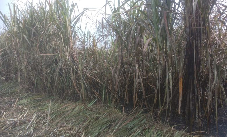 विधुत एचटी लाइन से निकली चिंगारी से तीन किसानों का करीब आठ बिघा गन्ना जला