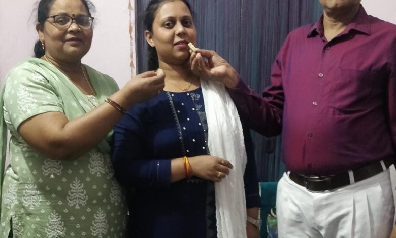 जिला चिकित्सालय के चीफ फार्मेसिस्ट प्रमोद कुमार ने मिठाई खिला कर दी पुत्री को बधाई।