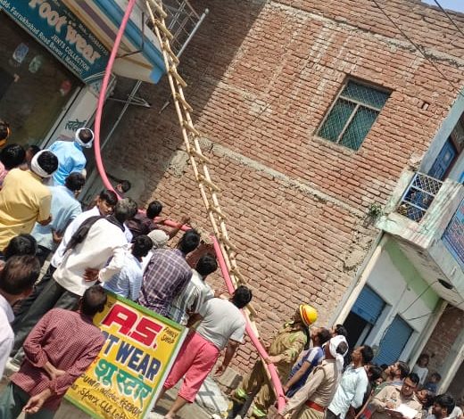 मैनपुरी/बेवर – रविवार दोपहर कस्बे के फर्रुखाबाद रोड स्थित नगला बदन (बहाता) में शॉर्ट सर्किट से लगी आग में ग्रहस्ती का सामान व जूते चप्पलों का गोदाम जलकर राख हो गया। मौके पर पहुंची फायर ब्रिगेड की गाड़ी ने कड़ी मशक्कत के बाद आग पर काबू पाया। गनीमत रही की कोई जन हानि नहीं हो सकी। घटनाक्रम के मुताबिक बीपेश कुमार उर्फ सिंटू पुत्र लल्लू यादव निवासी नगला बदन (बहाता) के मकान में अचानक शॉर्ट सर्किट से आग लग गई। उपरी मंजिल पर सिंटू की पत्नी सोनाली अपने एक वर्ष यह बच्चे चीकू के साथ थी। नीचे से अचानक तेज आग की लपटे ऊपर की ओर उठने लगी। देखते ही देखते चीख पुकार मच गई। आनन फानन में आसपास के लोगों ने मौके पर पहुंचे। जहां पुलिस व फायर ब्रिगेड स्थानीय लोगों की सूचना पर पहुंची। फायर ब्रिगेड की गाड़ी ने सीढ़ी लगाकर सोनाली को उसके एक वर्षीय बच्चे सहित सकुशल बाहर की ओर से नीचे उतार लिया वही फायर ब्रिगेड कर्मचारियों ने कड़ी मशक्कत के बाद आग पर काबू पाया। आग में सिंटू की गृहस्थी का सामान व गोदाम में रखे जूते चप्पलों का स्टॉक जलकर राख हो गया। बताते चलें कि मकान में ही आगे दुकान में चिंटू जूते चप्पलों का व्यापार करता था। पीछे मकान में ही स्टॉक रखा था। घटना में सिंटू ने बताया कि उसे 4 से 5 लाख रुपए का नुकसान हुआ है। फायर ब्रिगेड कर्मचारियों की समझदारी के चलते जूते चप्पलों का शोरूम आग की चपेट में आने से बच गया। इससे पहले की आग भीषण रूप धारण करती आग पर काबू पा लिया गया।
