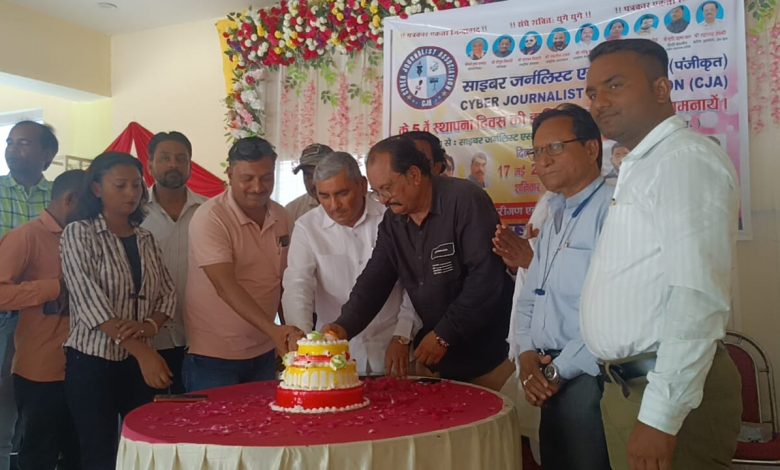 फतेहपुर। साइबर जर्नलिस्ट एसोसिएशन (सीजेए) का पांचवां स्थापना दिवस बड़ी धूमधाम से मनाया गया। इस दौरान मुख्य अतिथि के रूप में नगर पालिका परिषद के अध्यक्ष एडवोकेट राजकुमार मौर्य ने केक काटकर संगठन के शीर्ष नेतृत्व व पदाधिकारियों को बधाई देते हुए पत्रकारों एवं पत्रकारिता जगत के लिए हर संभव सहयोग का आश्वासन दिया है। इस दौरान संगठन की ओर से सीजेए मीडिया लाइव डॉट इन न्यूज़ पोर्टल का लैपटॉप से लाइव क्लिक करते हुए मुख्य अतिथि के साथ ही वरिष्ठ पत्रकार, विख्यात शायर, कवि एवं साहित्यकार शिवशरण बंधु हथगामी, वरिष्ठ समाजसेवी, व्यापारी तथा यादव महासभा के नेता चौधरी राजेश यादव, संगठन के राष्ट्रीय महासचिव शीबू खान, प्रदेश अध्यक्ष शहंशाह आब्दी, राज्य सलाहकार समिति के चेयरमैन ठाकुर अम्बरीष सिंह, जिलाध्यक्ष त्रिभुवन सिंह सहित अन्य पदाधिकारियों एवं सदस्यों ने विमोचन/उद्घाटन किया है।