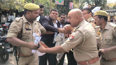 एसआई परीक्षा के प्रश्न मे पंडित’ शब्द के प्रयोग पर बवाल,दीवानी कचहरी में अधिवक्ताओं का जोरदार प्रदर्शन