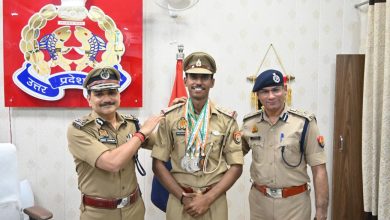पुलिस आयुक्त कमिश्नरेट वाराणसी श्री मोहित अग्रवाल द्वारा आरक्षी (कुशल खिलाड़ी) श्रेय भारद्वाज को निरीक्षक पद पर पदोन्नत होने पर स्टार लगाकर दी गई शुभकामनाएं
