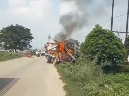 अचानक ट्रक के सामने आवारा पशु के आ जाने के कारण ट्रक ड्राइवर ने आवारा पशु को बचाने के चक्कर में उसका ट्रक अनियंत्रित होकर सड़क के किनारे लगे ट्रांसफार्मर से जा टकराया जिससे शॉर्ट सर्किट हो गया देखते-देखते शॉर्ट सर्किट के कारण ट्रक में आग की लपटें बुरी तरह से फैल गई जिसे देखते ही देखते पल भर में लाखों रुपए का अनाज राख के ढेर में तब्दील हो गया कड़ी मशक्कत के बाद फायर विकेट की टीम ने आग पर तो काबू पा लिया परंतु ट्रक में लगे अनाज को नहीं बचाया जा सका ट्रक मालिक के अनुसार ड्राइवर व क्लीनर बाल बाल बचे उन्हें किसी प्रकार का जान माल का नुकसान नहीं हुआ है परंतु ट्रक पूरी तरीके से जलकर राख हो गया।