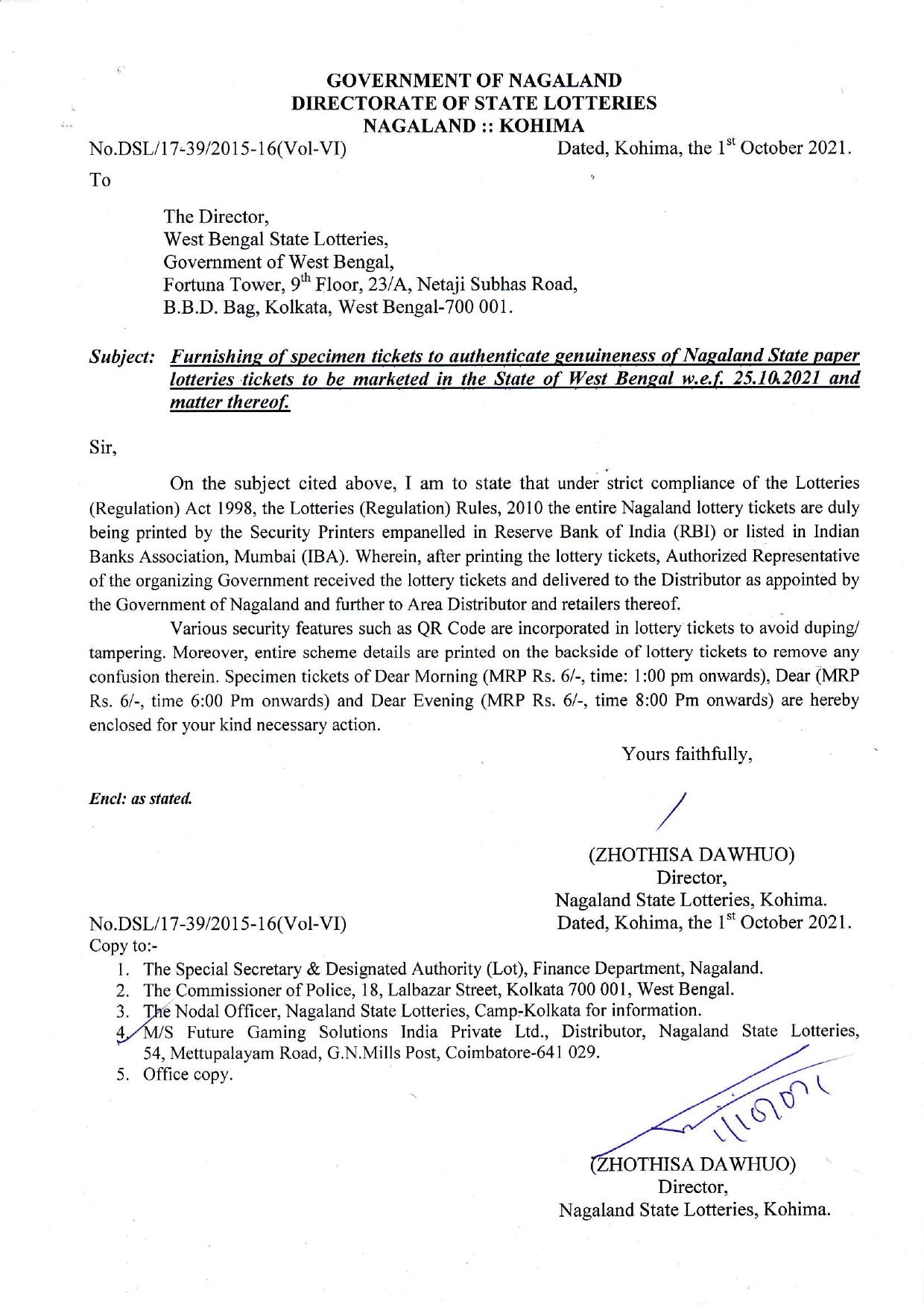 Genuinity Letter of Nagaland State Lotteries (25-10-2021)